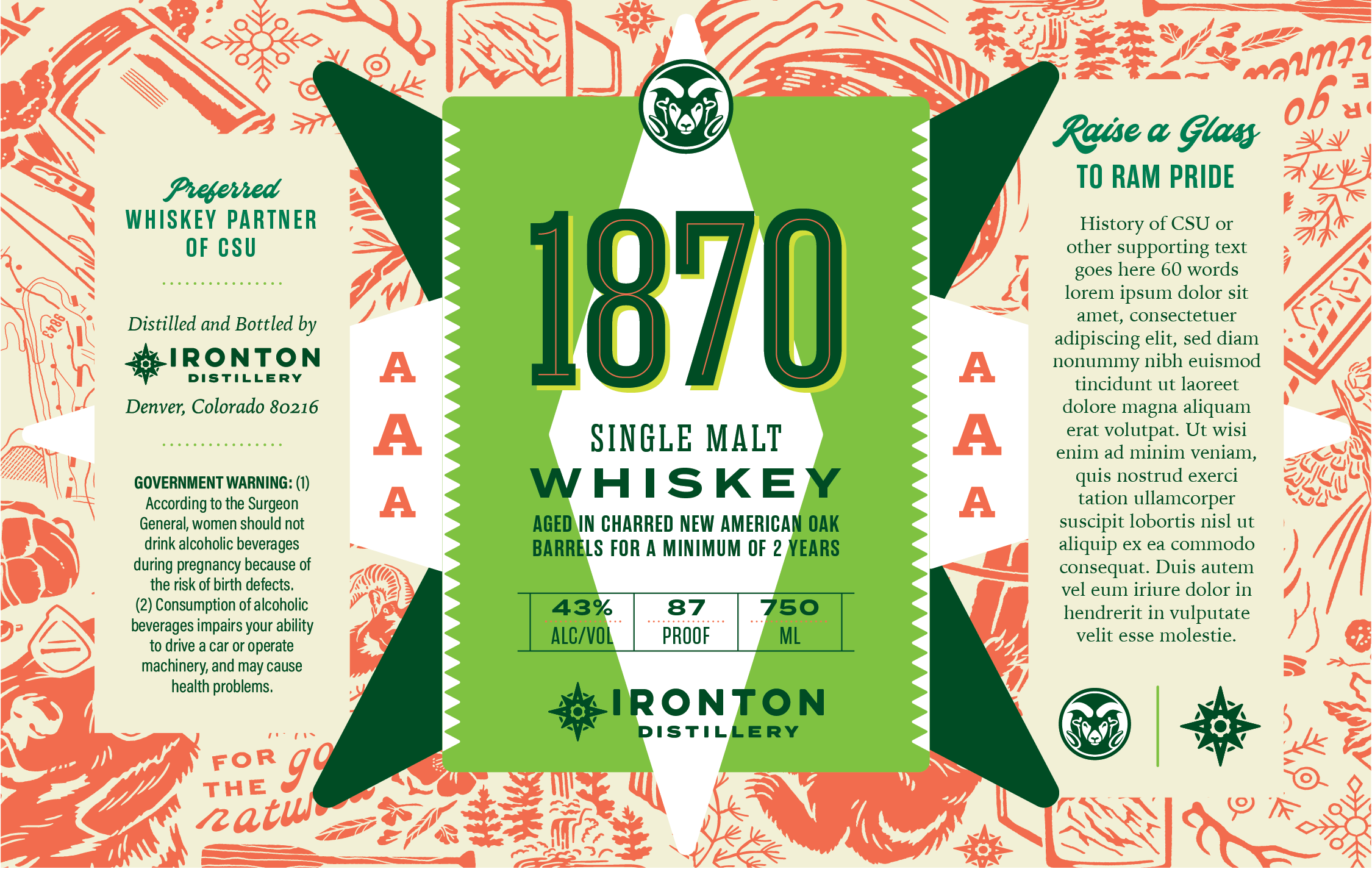 We had a few tweaks to the alcohol content placement and required legal text, and our team wrote a blurb about CSU and the partnership with Ironton. Ironton also requested more from their brand in the label, including blue and some of the font choices.