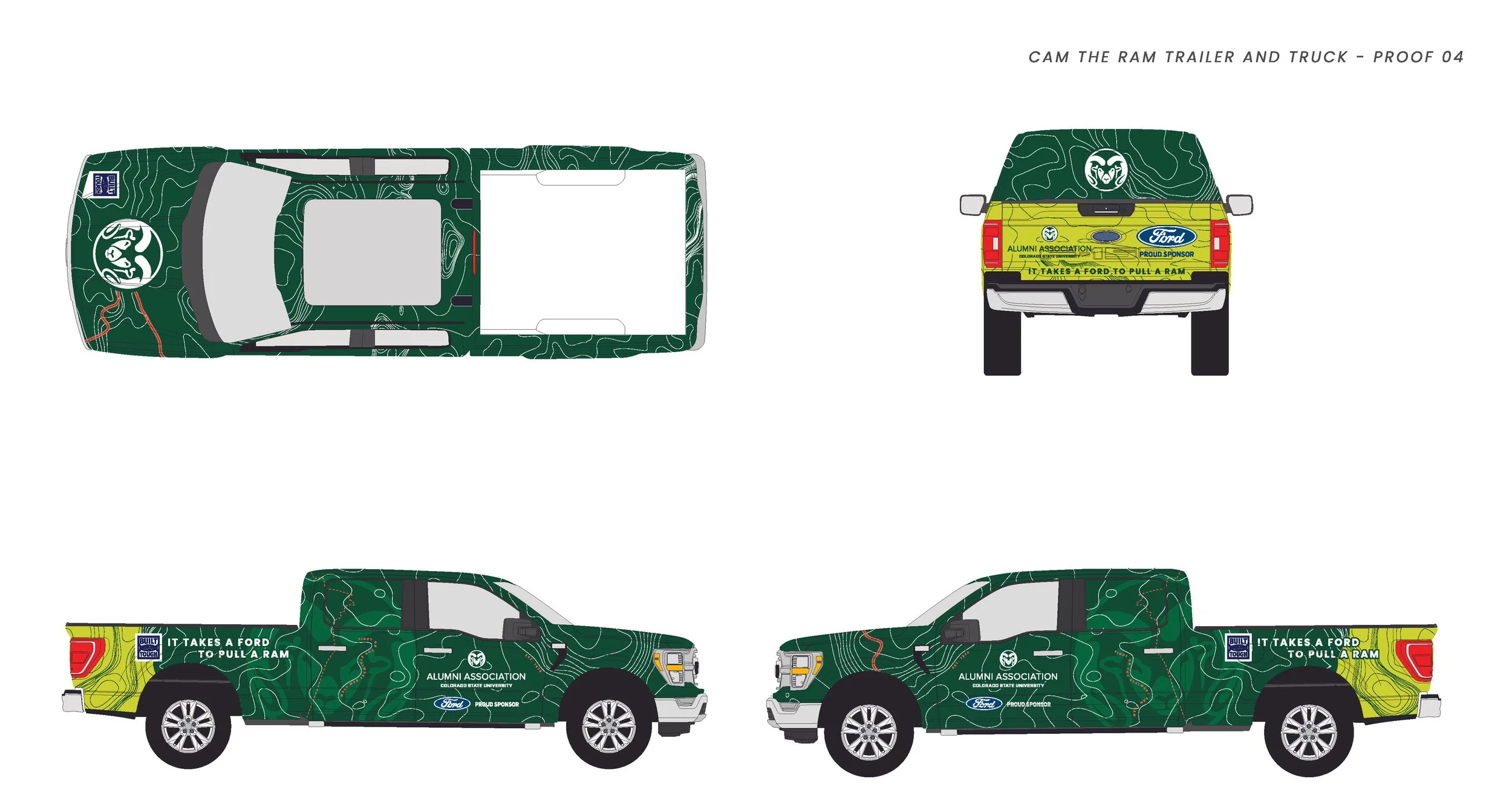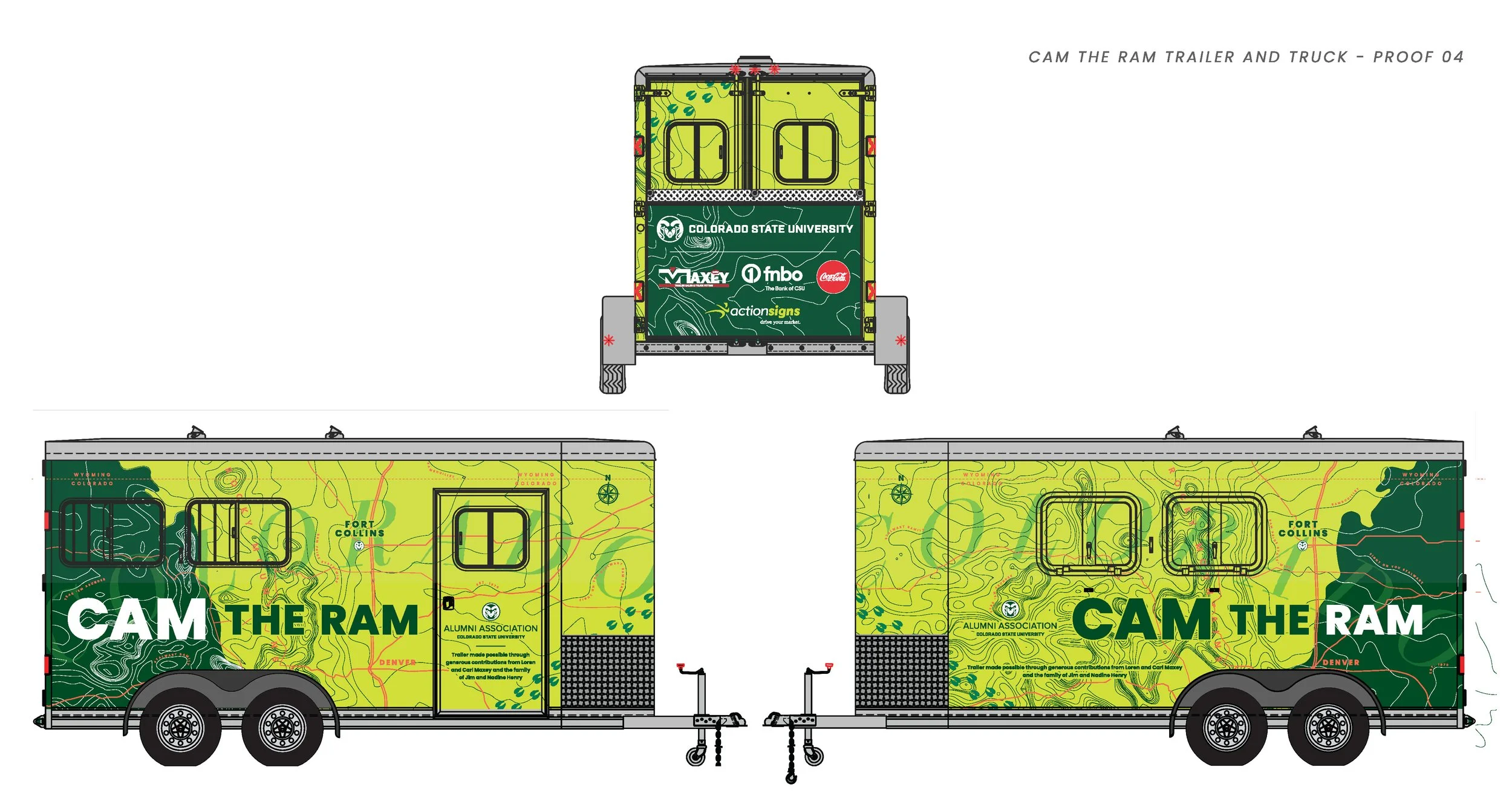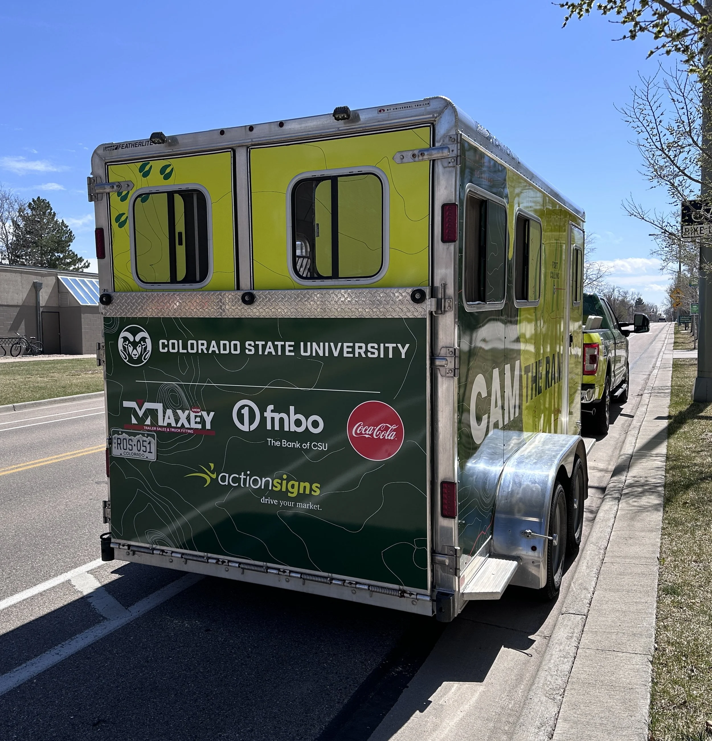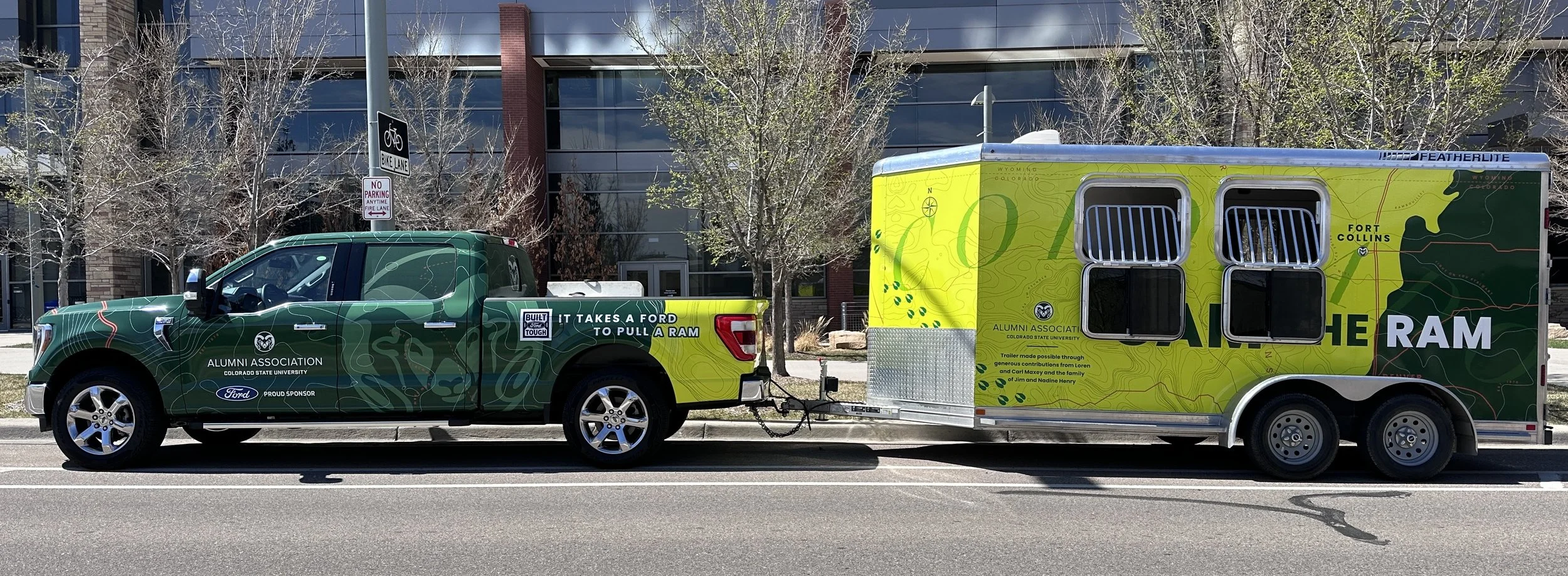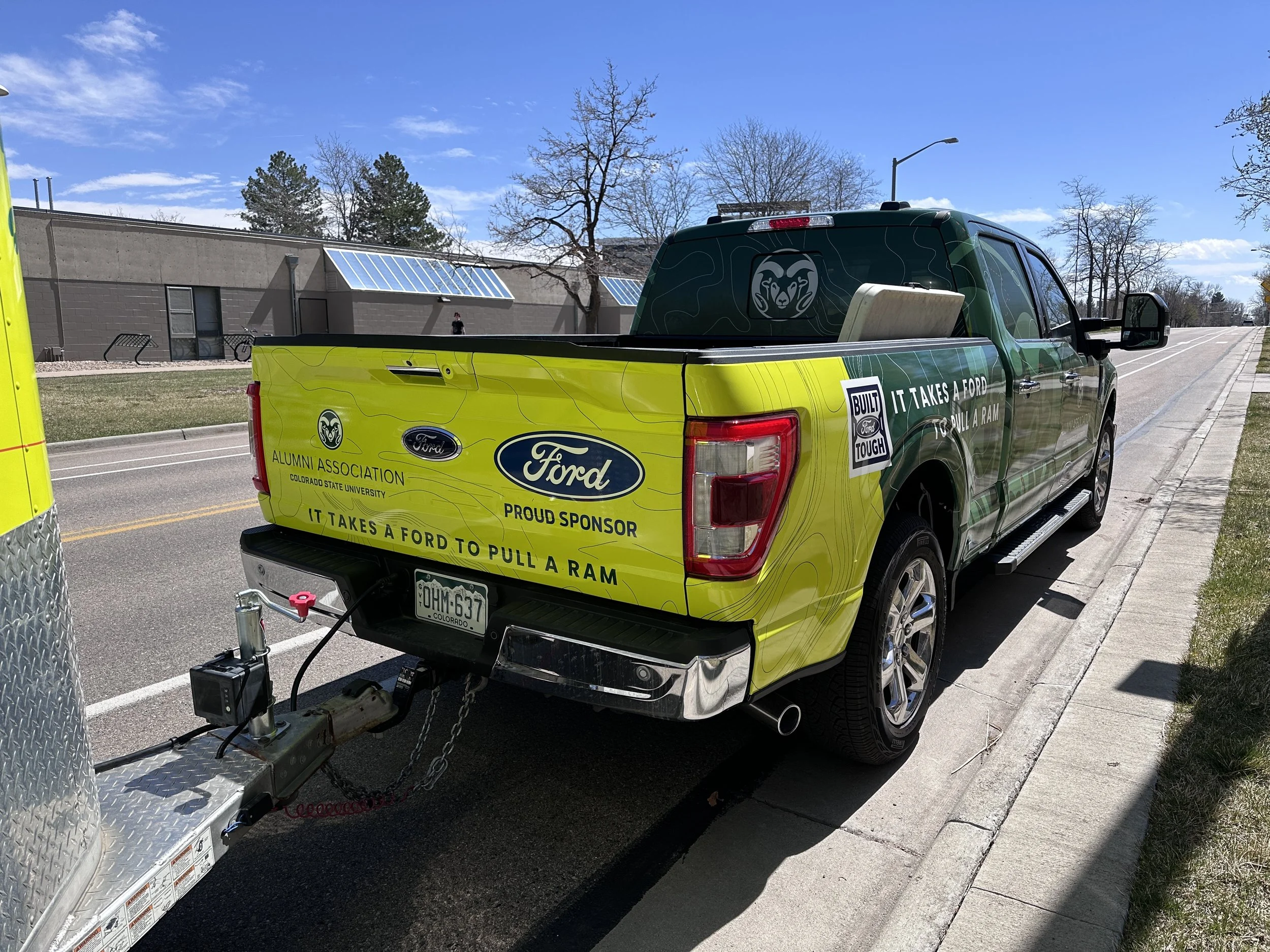 The CSU Alumni Association manages the care of Colorado State University's live animal ambassador, CAM the Ram, and his truck and trailer were due for an upgrade in 2024. CAM the Ram travels to sports rallies and other events across the state, so branding his truck and trailer offers a chance for thousands of eyes on the road to see CSU's brand.