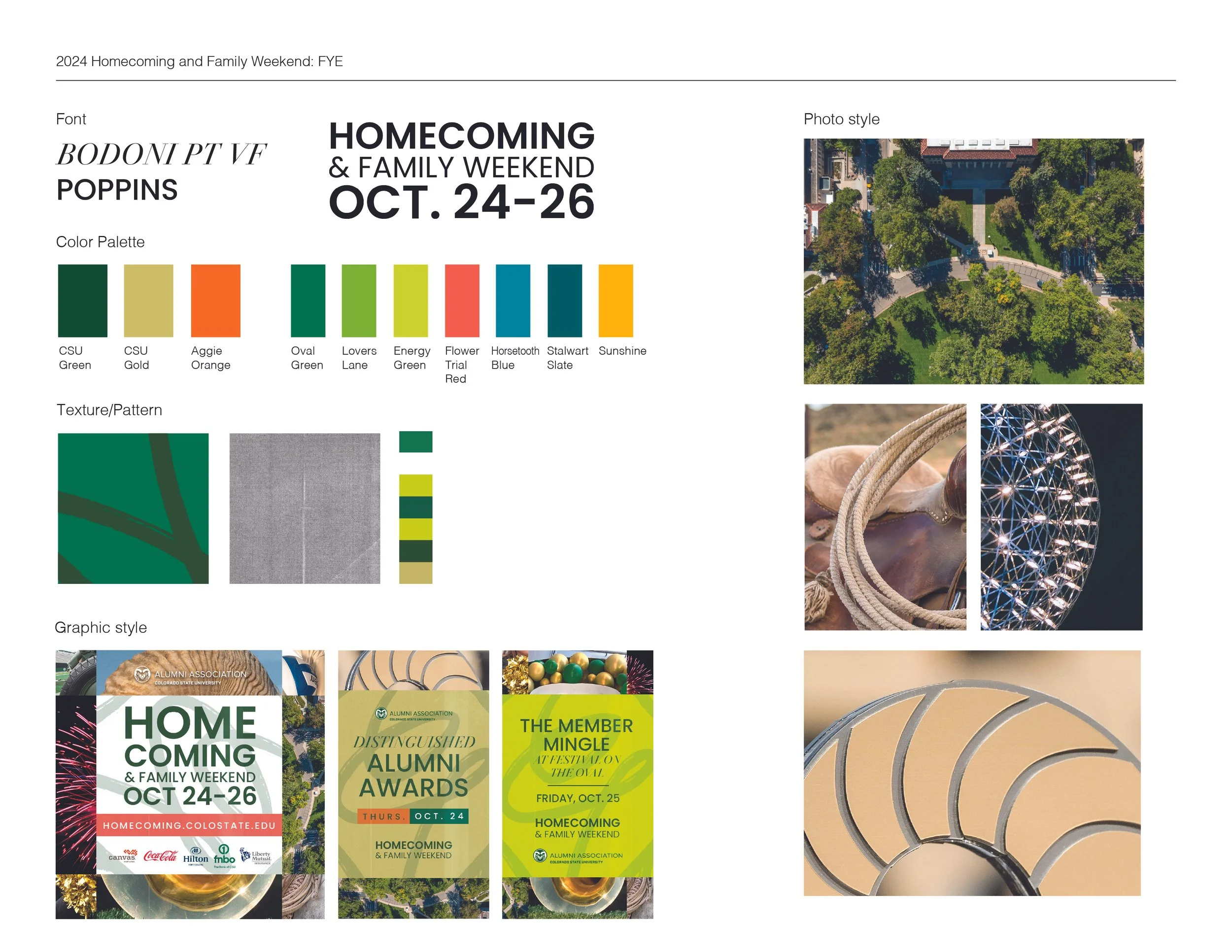 Our team creates the Homecoming & Family Weekend branding every year with a refreshed look and theme to play with. In fall of 2024, to align with Colorado State University’s new Find Your Energy brand that launched in spring, we chose to adapt the brand’s look and feel into a “signature event.”